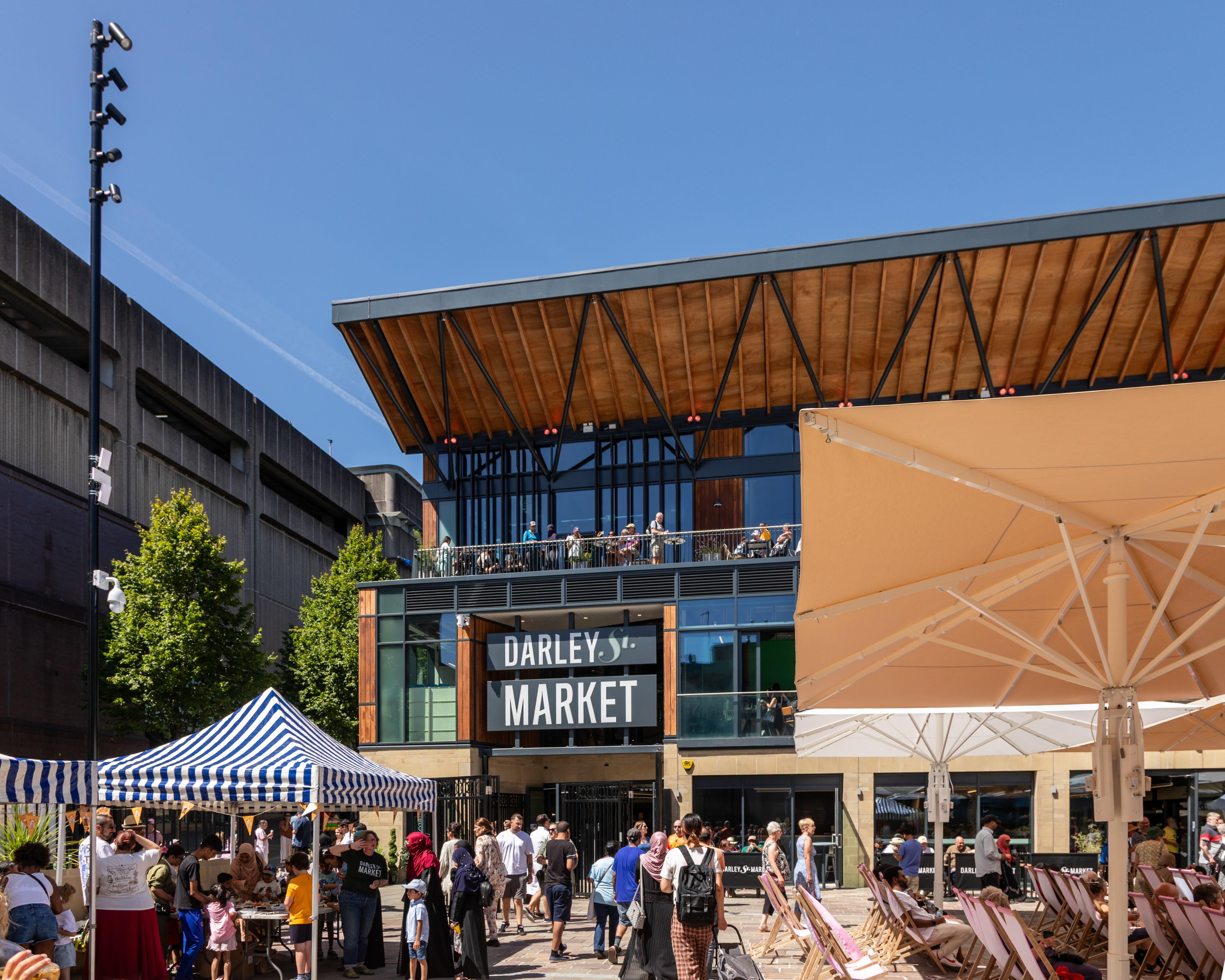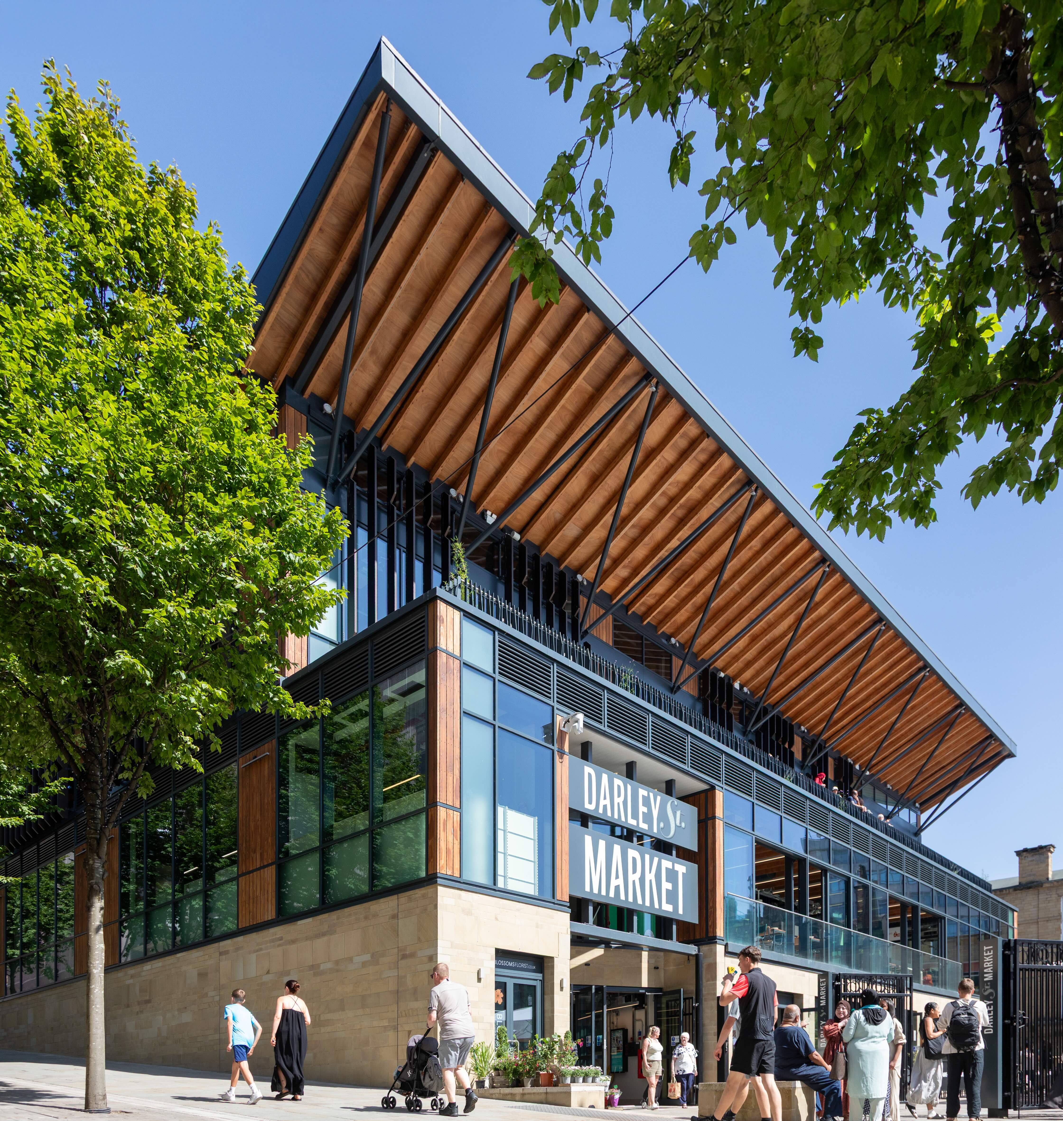 Opened in July 2025, Darley Street Market is a landmark development at the heart of Bradford’s regeneration and a key project in the city’s 2025 City of Culture celebrations. Designed by Greig & Stephenson Architects, the £23 million scheme reimagines the traditional market as a vibrant, inclusive civic space. More than a retail destination, the market champions environmental, social, and economic sustainability—integrating green technologies with the rich cultural heritage of market trading. It is a contemporary, community-focused hub designed to support local enterprise and bring people together.